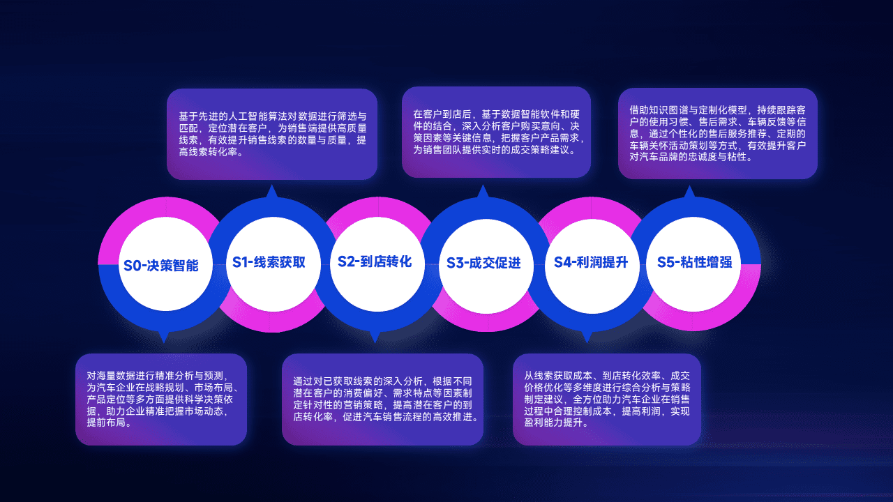 通过拓宽潜在客户来源、、优化线索分配并提高到店转化率,,,,以增强销售效率。。同时,,,利用线索数据不断优化分析模型,,,有效提升转化率,,,扩大营销影响力。。。。